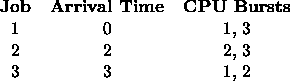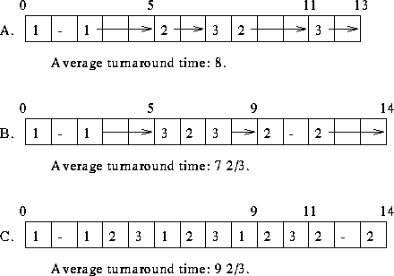 Calculate the average turnaround time for each of the three scheduling disciplines listed: