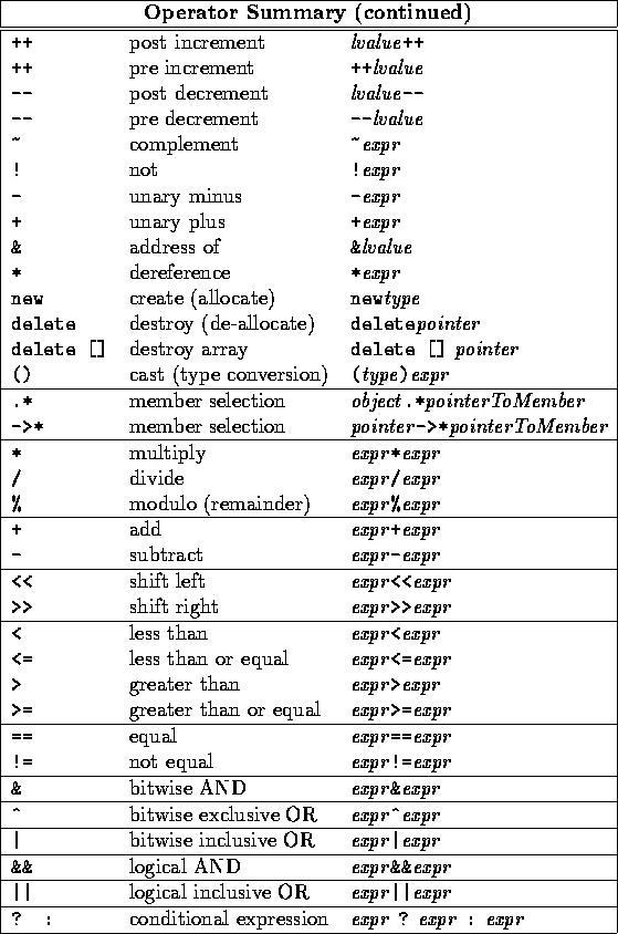 Assignment, unary operators right associate; all others left associate