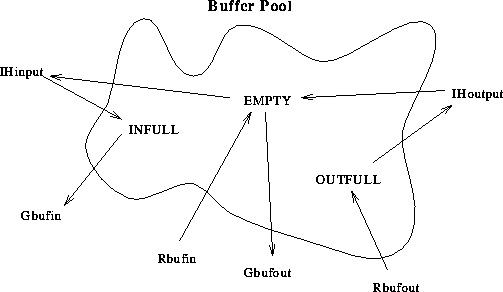 - Rbufout(bufptr) --- places the full output buffer pointed to