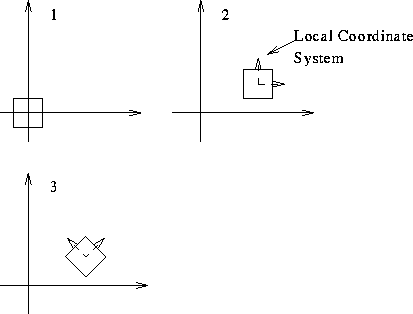 glLoadIdentity(); glTranslatef(...); glRotatef(...); // Render polygon.