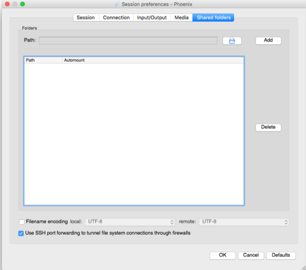 Select the Shared folders tab. Configure the settings as you see them